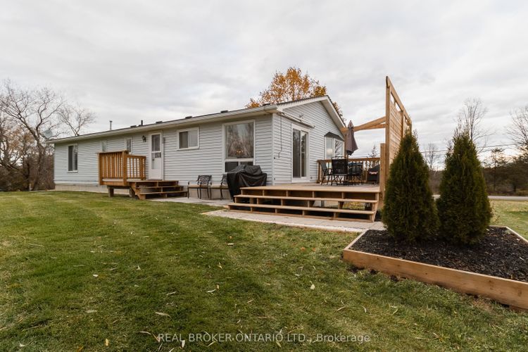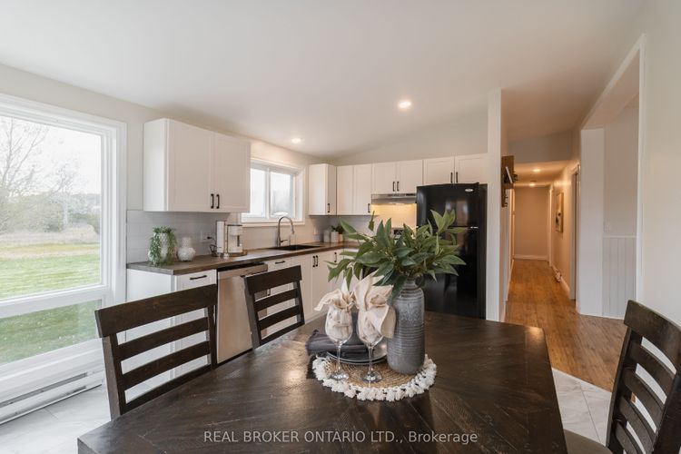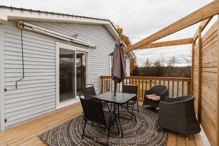 Welcome to this charming and thoughtfully updated, raised bungalow nestled in the peaceful countryside of Trent Hills. Located just a short drive to Campbellford, Warkworth, and the Trent River, this home combines rural charm with everyday convenience-perfect for those seeking both comfort and tranquility. Step into the bright foyer and ascend to the main floor, where a sun-filled living room welcomes you with a large bay window and a picture window. The updated, eat-in kitchen features butcher block-style countertops, a tasteful backsplash, and a large window over the sink offering a lovely backyard view. A walk-out from the kitchen leads to the deck, ideal for morning coffee or evening barbecues. The main floor boasts three bedrooms, including a spacious primary bedroom with a double closet and an updated 4-piece ensuite complete with his-and-her sinks. An updated, main 4-piece bathroom and a convenient laundry room, with a walk-out to the backyard, complete this level. The fully finished basement offers excellent additional living space, featuring above-grade windows that fill the area with natural light. There are two additional bedrooms, a generous rec room, a cozy play area, and a storage room offering versatility for family needs, hobbies, or guests. Set on approximately half an acre with mature trees, this property provides plenty of space to enjoy the outdoors and take in the quiet, country setting. (id:26452)