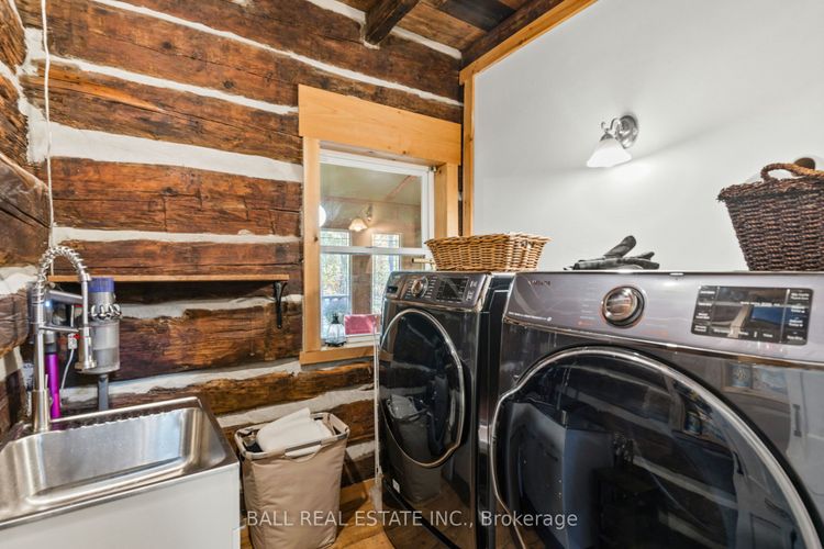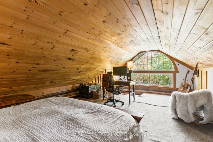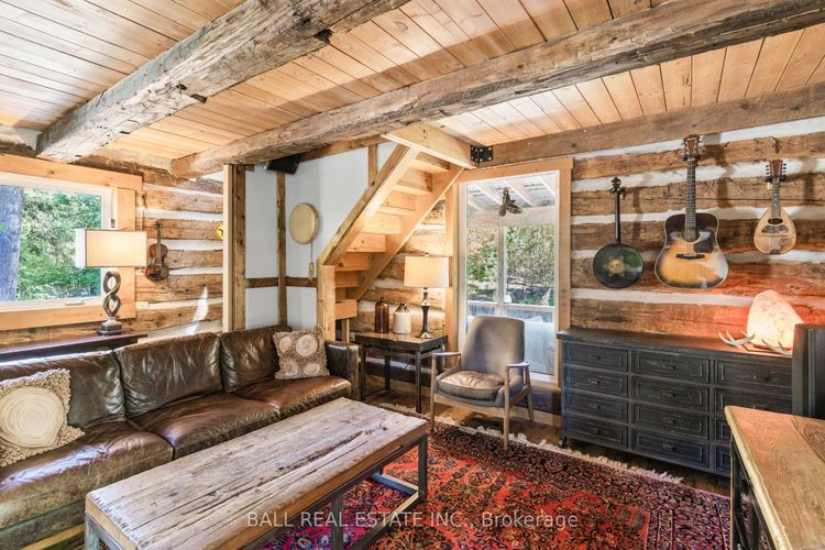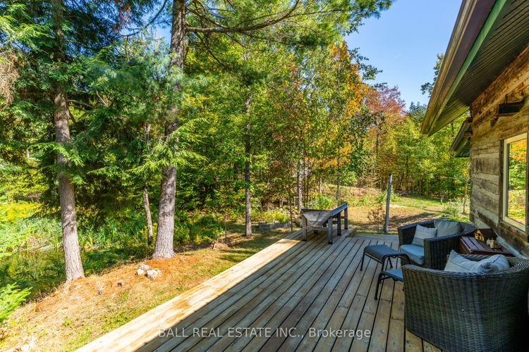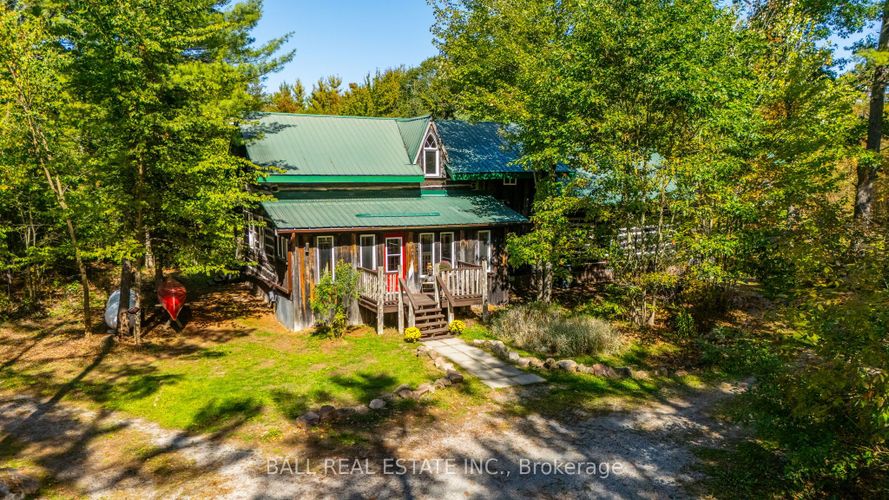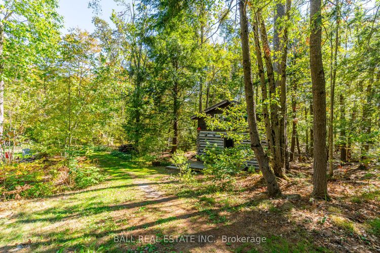 Tucked away on a quiet municipal road just 15 minutes from Bobcaygeon and Buckhorn, this remarkable 15 acre property offers privacy, nature, and a truly one-of-a-kind lifestyle. Featuring forest, winding trails, and tranquil ponds, this is a setting where everyday life slows down and feels connected to the land. At the heart of the property is an original 1836 log cabin, thoughtfully preserved and tastefully updated to balance character with comfort. Enter the bright front porch with ample space, while inside the renovated kitchen showcases a granite waterfall island, ample cabinetry, and an eat-in dining area with walkout to the rear deck overlooking the pond. The main floor also includes a flexible office or bedroom, 4pc bathroom, laundry, and utility space. Upstairs offers 3 additional bedrooms and a 4-piece bath, while the private primary suite enjoys peaceful views across the property. The living room is warm and welcoming, ideal for gatherings. Step outside to experience the true magic of this property. A large deck and screened-in room create effortless indoor-outdoor living, perfect for entertaining or unwinding while surrounded by nature. Multiple fire pit areas invite evenings under the stars. A detached single-car garage with woodstove & storage. Beyond the main home, the property includes several unique retreat spaces: a two-storey log cabin designed for reflection or guests, a second two-storey cabin with living/dining space, bedroom, composting toilet, and outdoor shower, plus a 17' yurt (2022) ideal for meditation, gatherings, or creative use. Serviced with a drilled well, septic system, propane furnace, and water treatment, this property offers rural serenity without sacrificing comfort. Access the Trent Severn Waterway just down the street with the public boat launch, community centre & local marina. (id:26452)