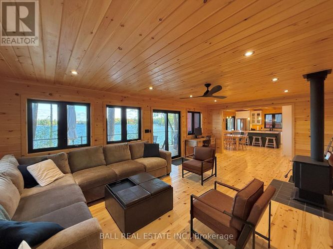 Fully renovated 4 season cottage on beautiful Beaver Lake! Board & batten bungalow set right at the waters edge, tucked in the trees on an acre of land with 112ft owned, clean waterfront for great swimming, fishing and boating on this desirable 7 lake chain. Significant quality renovations inside and out, ready for you to start enjoying cottage life with all new appliances (2024) and furnishings included. Newly updated metal roof, foundation, retaining wall, siding, full water system with heated waterline, heat/AC pumps, WETT woodstove, baseboard heat in crawl space, Generlink, EV charger, composite decking, staircases, flagstone landscaping etc. Step inside to beautiful open concept living space with spectacular lakeviews from the premium kitchen with eat-up island, dining and living room. Offering 3 bedrooms + loft, full bathroom and laundry with updated 200amp panel, on-demand hot water, softener etc. Walkout to lakeside deck or firepit that are just steps to the R&J Machine dock 20x12 with 2 seadoo ports & winch. Great lakeside storage outbuilding with kayaks & racks included, plus the outdoor furniture, Weber BBQ & Blackstone. Nothing left to do to start living quality cottage life on Beaver Lake and this sought-after lake chain! (id:26452)