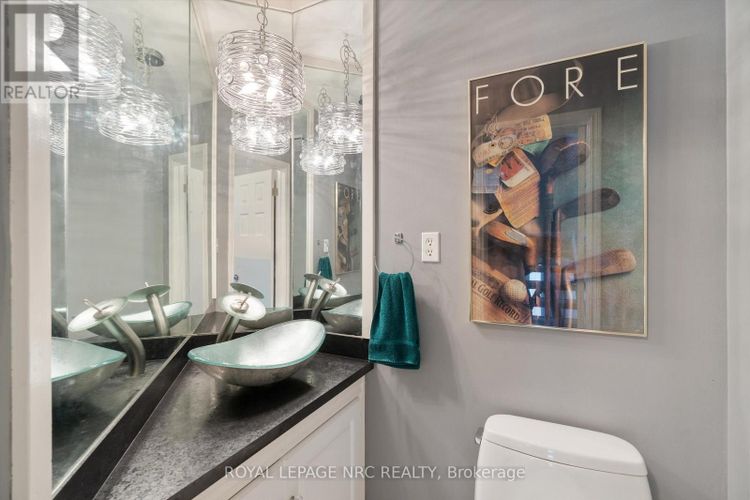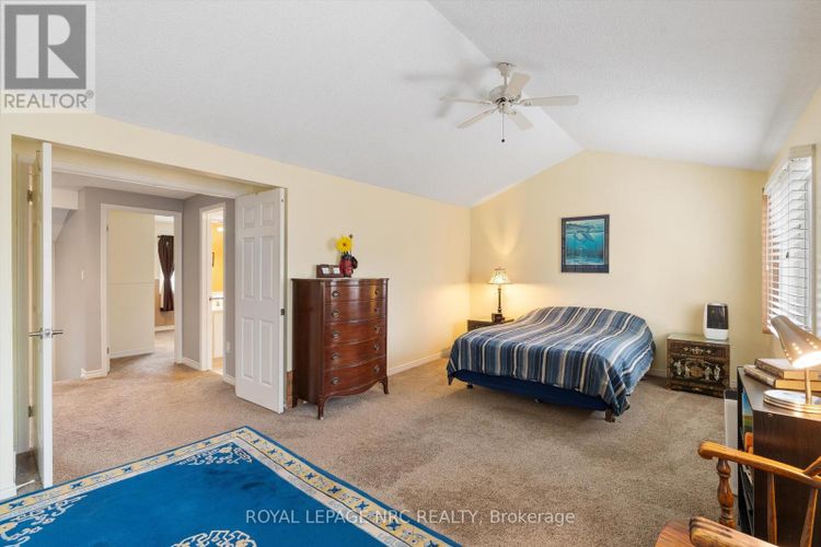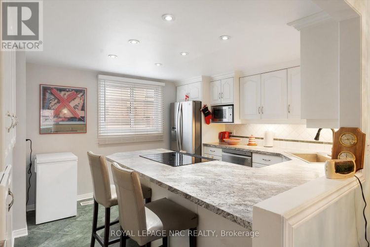 Savour premium resort style living at "The Clusters", great for entertaining or just kicking back on your oversized rear deck with a huge power awning. The 22' x 10' deck features views of the park-like common area but remains secluded from the large inground pool. This 1410 square foot end unit features a fully renovated kitchen with 30" deep pantry cupboards, breakfast bar & stainless steel appliances, an open concept main floor with lots of natural light, gas fireplace (most units in the complex have the fireplace on the basement level) & 2 piece bathroom. The upper floor includes the large primary bedroom with vaulted ceiling & mirrored wall to wall closets, 2nd bedroom & spacious 5 piece bathroom with air tub & separate shower. The lower level includes a walk-thru den with laundry closet plus the recroom with direct access to the oversized garage. Conveniently located near local eateries, retail shopping & QEW commuter access. Port Dalhousie is less than ten minutes away offering sunset views, waterfront trails, sandy beach, dining, marina, yacht club & the recently renovated piers. (id:26452)